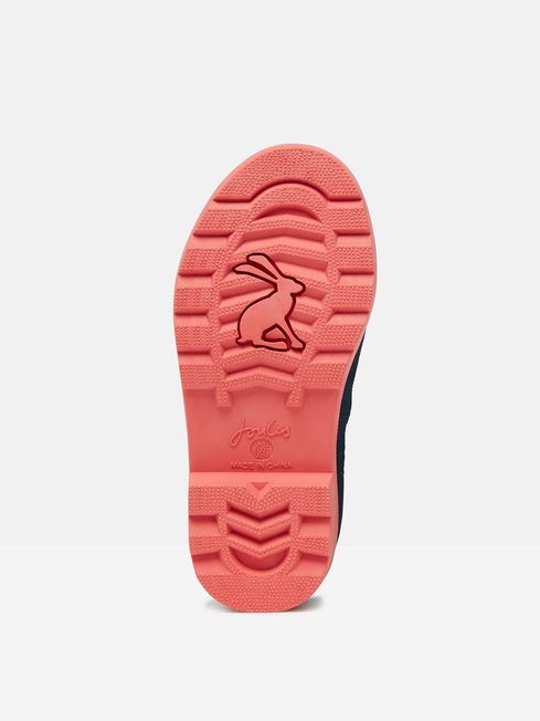 With wellies like this, your little one will be crossing their fingers tight and wishing to wake up to a rainy day. They're mid-height, crafted from hardwearing rubber and feature a delightful print we just know they are going to love. The sole is water dispersing with deep cleats which gives the foot better contact with the ground in uneven terrain and the adjustable strap with metal buckle creates the perfect fit. Because we know they will be wearing them at every given opportunity, we've made sure they're easy to clean - the insoles are removable and the outer fabric can be simply wiped clean with a damp cloth. Even better news, they're covered by our one-year welly guarantee. These are the kind of wellies they'll pull on over their pyjamas and rush outside to jump in the nearest puddle. Rubber Mid height Cleated, water-dispersing outsole Buckle detail Removable insole for easy cleaning Wipe-clean construction Hand-drawn print Joules branded rubber tab to the front Covered by our One Year Welly Guarantee.