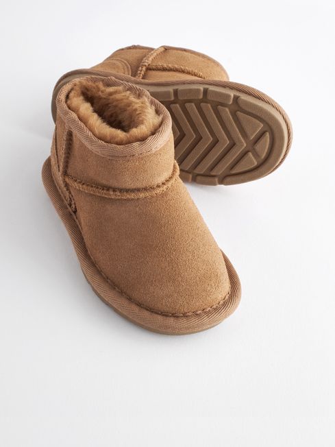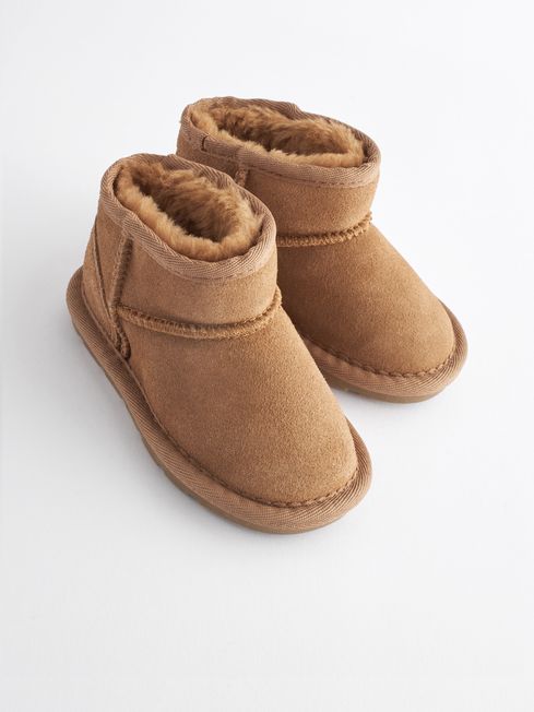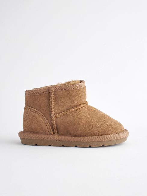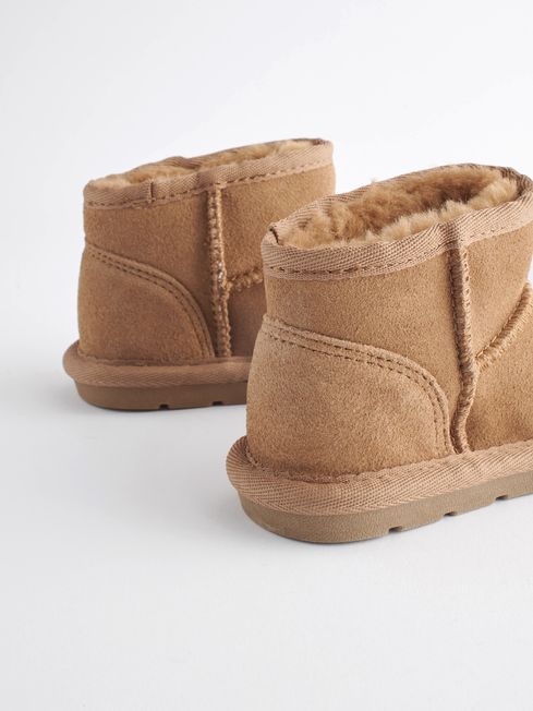 Next Tan Brown Suede Faux Fur Lined Water Repellent Pull-On Suede Boots