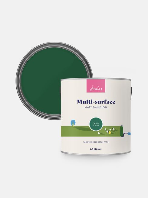 Plunge yourself into nature with this deep green paint with cool blue undertones. Inspired by lakes, rivers and tarns, this is a strong yet serene shade that will add wonder to any wall or living space. Joules multi-surface matt emulsion makes decorating simple. This easy-to-use durable paint can be used on multiple surfaces including walls, ceilings, wood and metal. Water-based and quick drying it is easy to apply and provides incredible coverage and a durable finish. Designed to coordinate beautifully with the Joules Easy to Hang Wallpaper Collection, each one of the Joules colours will allow you to tell your own story and brighten up your home. Bring the outside in with these nature-inspired colours that will make your home stand out from the crowd. *Not suitable for oil-filled radiators.