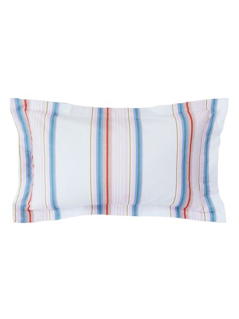 Keep things simple yet stylish with stripes! This bedding set feels great and looks fresh for the season. It has a crisp crème background with an array of horizontal stripes in an uplifting palette of blue, pink, red, green and gold. Switch it over and you'll find a classic blue and crème ticking stripe. This set comes with two matching Oxford pillowcases (single beds come with one). 100% Brushed Better Cotton
