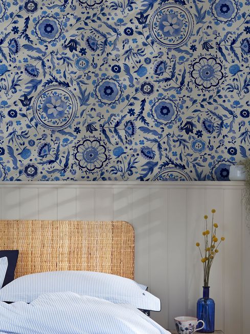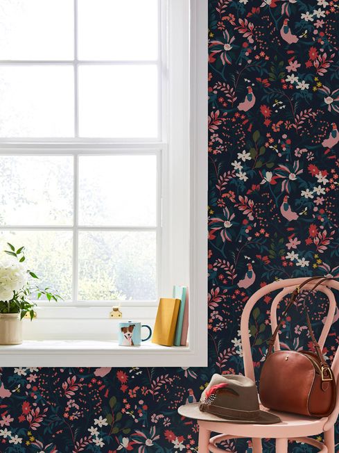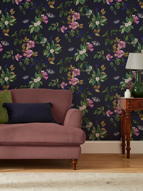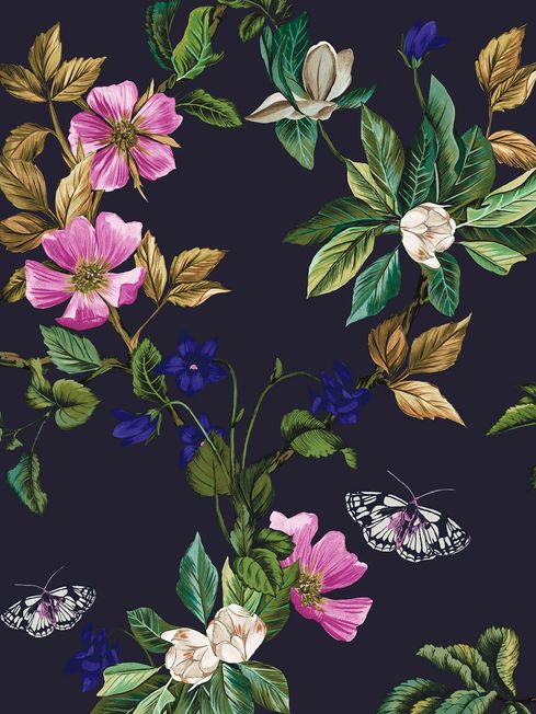 French Navy Wakerley Woodland Floral Wallpaper Wallpaper