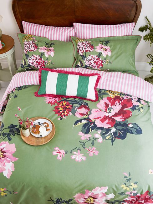 Green Hydrangea Floral Duvet Cover and Pillowcase Set
