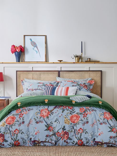 Blue Botanical Bee Duvet Cover and Pillowcase Set