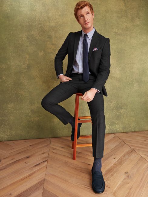 Charcoal Grey Wool Slim Fit Suit: Trousers