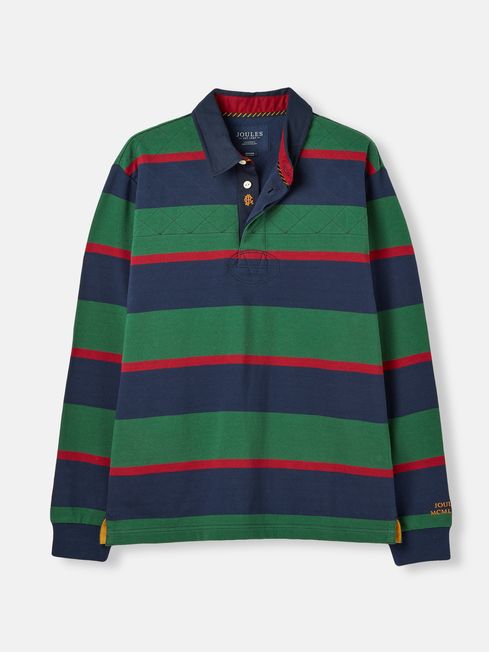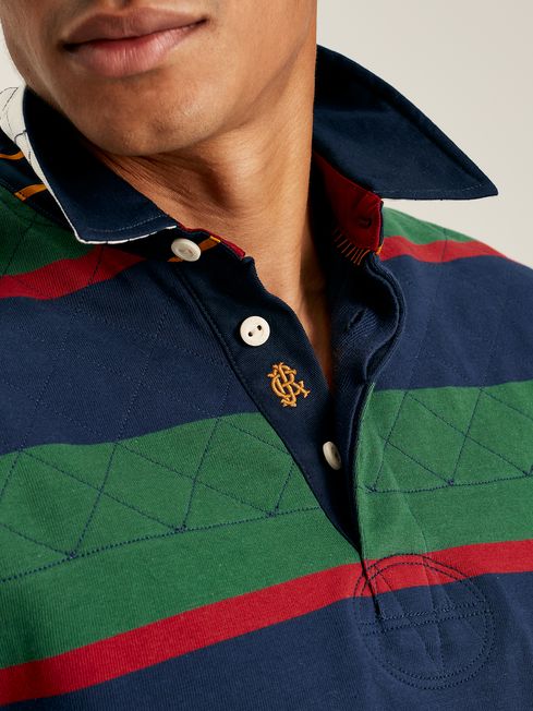 This rugby shirt hits the spot in both style and practicality. It carries the look of a classic rugby shirt with stripes, a twill collar and a concealed button placket. Making it unique is the striped undercollar detail, hidden embroidery to the placket and cuffs, quilted yoke and hardy cotton fabric. It will be a reliable layering go-to for years to come. Cotton Classic fit Concealed button placket with single exposed button Twill collar Striped undercollar Quilted front and back yoke Side vents Hidden embroidery to the placket and cuffs Striped