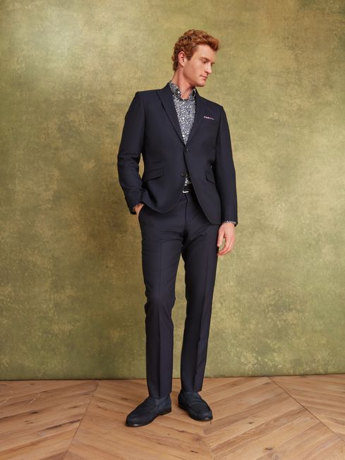 Navy Blue Wool Slim Fit Suit: Trousers