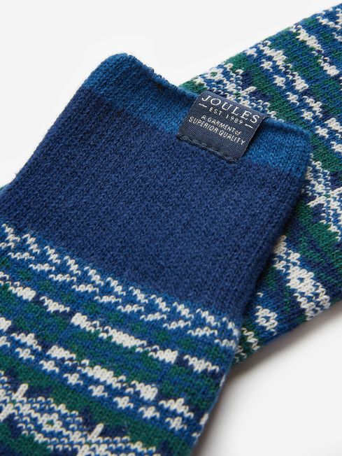 Put a touch of festive fun into every step with these wintry Boot Socks. Designed to be worn under boots to keep your feet warm and cosy, they're adorned with a fir tree Fairisle pattern as well as a contrasting toe and heel. We've added an elasticated, ribbed cuff for extra comfort and an elastane panel at the arch for a snug fit that won't bunch up or roll down. Knitted boot socks Single pair Festive design Contrasting heel and toe Joules branded tab to the cuff