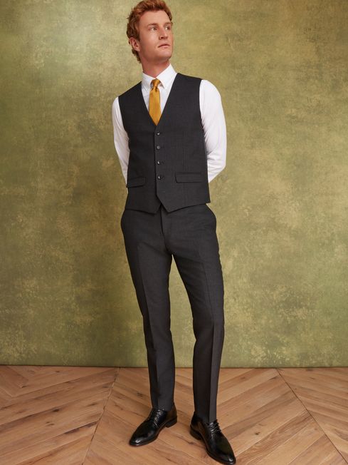 Light Grey Wool Slim Fit Suit Waistcoat