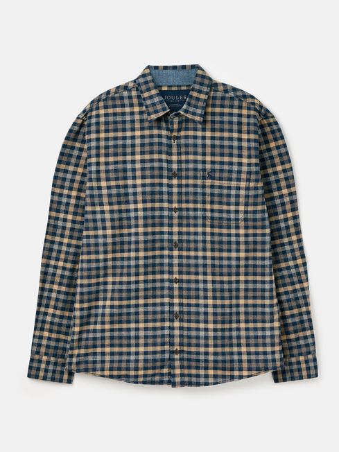 A man's wardrobe isn't complete without a collection of easy-going checked shirts to hand. With the Buchanan, both smart and casual boxes are ticked. Wear it unbuttoned over a t-shirt and jeans for casual days, or buttoned up with chinos for a more refined look. This all-rounder has a soft brushed fabric and an unfussy, classic fit. Other functional details include a button-down fastening, button cuffs and a patch pocket to the chest. The checked pattern features a deeper colour palette for the cooler months and is finished with chambray trims. Woven Classic fit Long sleeves Button-down fastening Button cuffs Collar Chambray trims Hanging loop to the back Checked