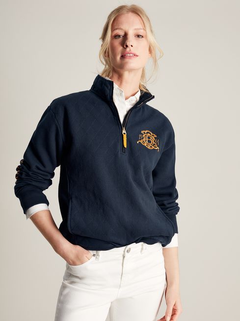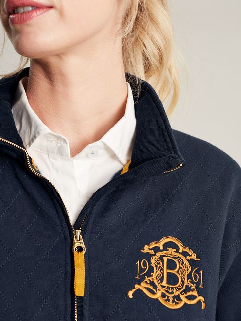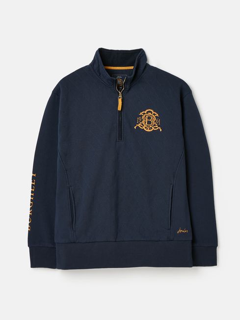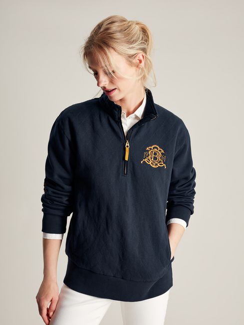 You'll be pleased that you invested in this sweatshirt if the forecast for this year's Burghley Horse Trials is looking less than desirable. A great layering style, it has a quarter zip fastening, a funnel neck faced with pincord and diamond quilting to the body for a traditional touch. As it's part of the official collection, there is even embroidery on the chest and outer back neck. The sleeves feature an additional event screen print and ribbed cuffs. Crafted from a quality cotton blend, it'll last you for years to come. Part of our official Burghley Horse Trials collection Cotton blend Diamond quilting to the body Quarter zip fastening Funnel neck with pin cord facing Event embroidery to the chest and outer back neck Screen print detail to the sleeve Ribbed hem and cuffs Side pockets in seams
