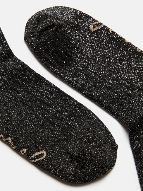 Frilled socks make a super sweet addition to little ones' outfits and this pair are extra special. They're made from a soft cotton blend, are ribbed for extra comfort and feature a contrasting coloured toe. The frilled trim will look quite the part popping out of a pair of classic Mary Janes and paired with their favourite party dress. Cotton blend Ribbed Ankle socks Frilled edge trim Contrast toe Branding to the bottom of the foot Black colourway features metallic thread