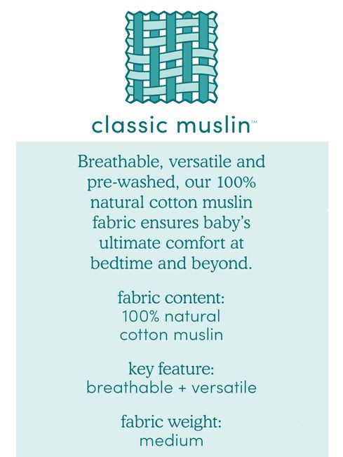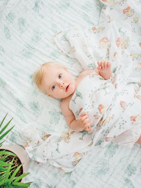 aden + anais organic cotton muslin blankets are consciously crafted with quality and sustainability in mind, meeting the strictest ecological, social, and processing standards. Highly breathable and supremely soft, these versatile blankets can be used in 5 additional ways –burp cloth, nursing cover, tummy time mat, changing mat, and receiving blanket. Signature hand-drawn prints are printed on premium quality organic cotton muslin that gets softer with every wash. 100% organic cotton 4 pre-washed 120cm x 120cm blankets Versatile, use as burp cloth, nursing cover + more Breathable to help reduce the risk of overheating Machine washable + softer with each wash Wash before first use. Machine wash cold with like colours. Use only non-chlorine bleach when needed. Tumble dry low. Warm iron if needed. Do not dry clean. Free of azo chemical compounds Recyclable packaging in compliance with the Green Dot initiative