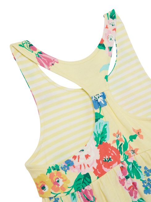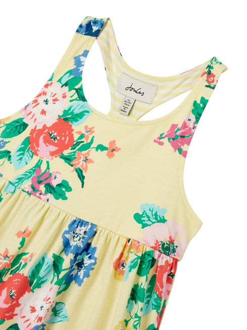 Our Juno tiered dress is a dress your little one will love wearing all summer long. It's crafted from soft jersey, has gathered seams for a slightly fuller shape and is sleeveless so will keep them cool when the sun puts his hat on. There's a racer back that's oh-so-pretty and an all over print that's simply perfect for the season.