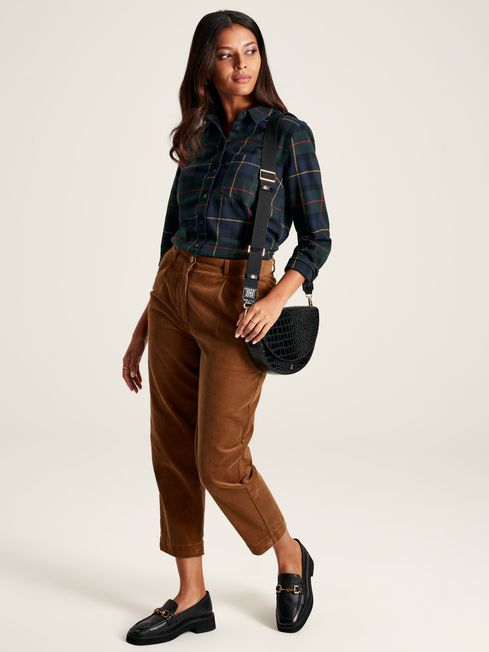 The Lorena shirt is a style that is always a joy to bring back every autumn and winter season. It is crafted from a cotton fabric that has been brushed for a supremely soft feel and features a classic checked pattern. The curved hem and dipped back offers a feminine twist, while the longline shape and relaxed fit make it perfect for pairing with skinny jeans or leggings. It carries classic shirt features too including a collar, button-down fastening, button cuffs and a patch pocket to the chest. As with all our garments, it's completed by a Joules embroidered hare as a mark of quality you can trust. Cotton Relaxed fit Brushed back fabric for a soft hand feel Longline Full button-down fastening Button cuffs Collar Single patch pocket to the chest Curved hem Dipped back Joules embroidered hare to the left cuff (as worn)