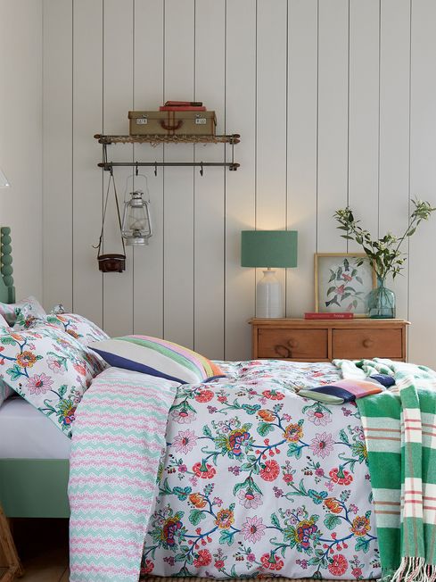 Mood-boosting and beautifully bright, this filled cushion is a must-have for the home. The multi-coloured stripes have been carefully hand woven creating a soft, textured finish and the reverse is a complemetary shade of blue. Team it with the Indienne Floral bedding to create a put-together look, or style alone with a chair.