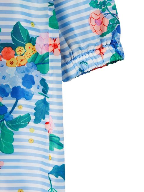 You can't stop the rain from pouring, but you can stop your little ones from getting soaked from top to toe, with this printed puddlesuit! This handy waterproof one-piece is made from 100% recycled polyester and packs away into its own pocket - perfect for taking anywhere and everywhere. It's got a hood, long sleeves with elasticated cuffs, elasticated stirrups to stop the legs riding up, a full zip fastening and fully taped seams to stop water seeping through. It's adorned in a hand-drawn print that's oh-so-cute and will add even more fun to puddle-splashing days.
