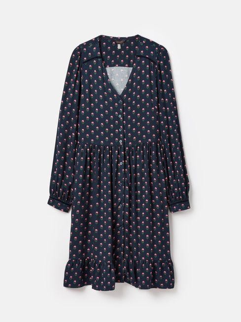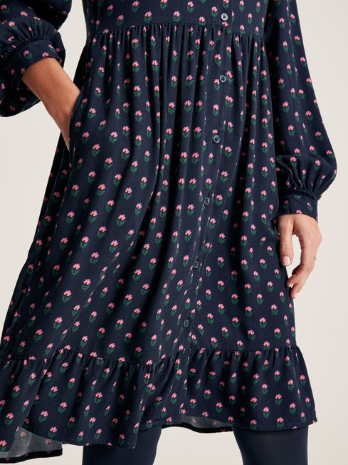 The Bonnie dress is proof that florals aren't just for spring. Featuring high-coverage blooms in a rich colour palette, it will elevate your autumn and winter wardrobe. It's crafted from a lightweight viscose that sits on the knee so can be styled with tights and leather boots. The V-neck and long sleeves with button cuffs open up the possibility for layering, while the peplum hem and button down fastening deliver on the details. It's finished with plush velvet tape to the shoulders and cuffs and has rather handy side pockets. Viscose Relaxed fit On-the-knee length Long sleeves with button cuffs V-neck Button down fastening Velvet tape to the cuffs and shoulders Peplum hem Hand-drawn print Length: 100cm (based on UK size 12)