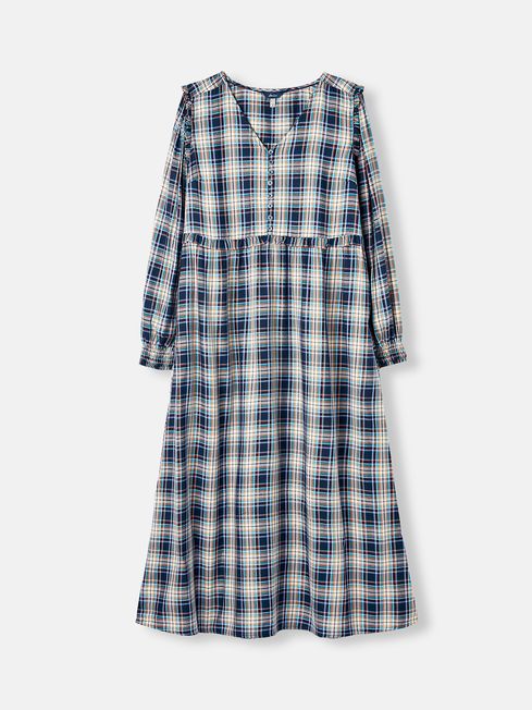 Dreaming of a dress to see you through the season in a sophisticated style? Our Camilla dress is full of charming vintage-inspired details you're sure to fall in love with, from the bound v-neck ending in a dainty buttoned front, to the soft ruffles to the shoulders and waist seam. The long sleeves are gathered at the top and end in a smocked cuff for a voluminous silhouette, and we've added two side pockets to the midaxi-length skirt. Midaxi length V-neck Frilled shoulders and waist seam Gathered sleeves Smocked cuffs Button front with elastic loops Side pockets Bust darts Hand-drawn print Length: 130cm (based on a UK size 12)