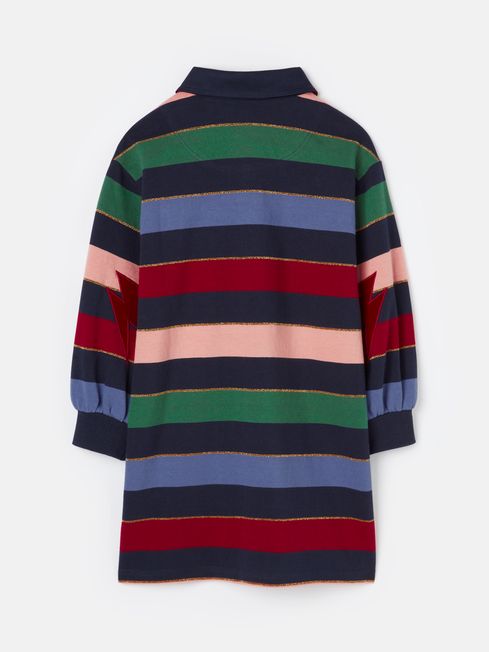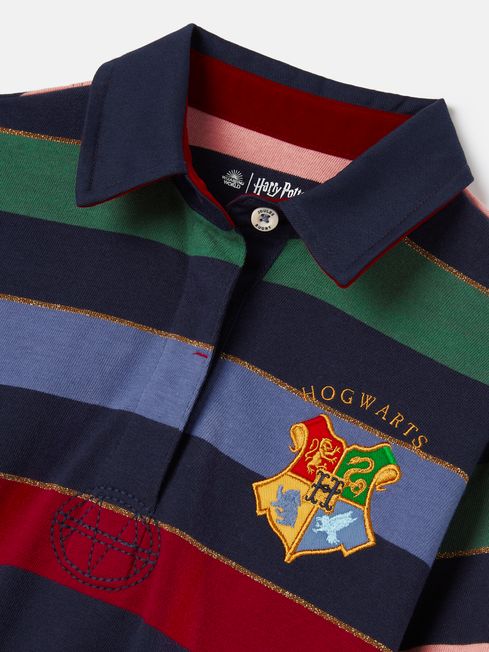 Featuring colourful stripes, incorporating rugby inspired details and sporting a Hogwarts School Crest™, this dress will add a preppy touch to your little one's wardrobe. Part of our official Harry Potter™ collection it will bring together their love for the franchise with a practical everyday dress they'll delight in wearing. It's crafted from quality cotton jersey, has a relaxed fit and a concealed button placket with a twill collar. Elevating it to magical levels are surprise and delight details, from glittering metallic thread and a velour colour pop undercollar with Hogwarts™ embroidery, to velour lightning bolt elbow patches. This is a style they'll cherish forever (well, until they grow too big for it, anyway). We'll let you in on a secret... there's a matching sweatshirt - just search for the Hermione sweatshirt. Part of our official Harry Potter™ collection. Cotton jersey Relaxed fit Knee length Concealed button placket Twill collar with velour colour pop and Hogwarts™ embroidery Velour lightning bolt elbow patches Hogwarts School Crest™ to the chest Metallic details WIZARDING WORLD and all related trademarks, characters, names and indicia © & ™ Warner Bros. Entertainment Inc. Publishing Rights © JKR. (s23).