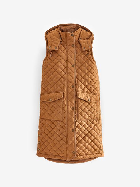 With a fit that's as relaxed as the walks you'll wear it on, our Chatsworth diamond quilted gilet is a comfortable layering piece that's made for the great outdoors. It's showerproof (perfect for short bursts of rain) with a longline shape and has a dropped hem for extra coverage in light rain. There's a hood that can be removed if the forecast is in your favour and popper-fastened side splits for movement and breathability. Details matter, of which Chatsworth has plenty including cord trims throughout, fixed drawcords and two front pockets with popper fastenings. If you take a peek inside you'll discover a hand-drawn printed lining and some hidden embroidered details. Love this? Then you might like to know there's a matching Chatsworth Coat available too! Two-way zip fastening Showerproof fabric Fully lined Detachable hood Chin guard Cord trims Diamond quilting Grosgrain binding Side splits with popper fastening Patch pockets with fleece lining