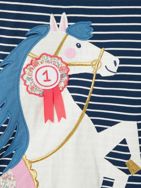 If any top is going to be a big hit with your little one, it's the Ava. It has a fun and colourful applique design to the front that they will love showing off to everyone they meet. The crew neck, relaxed fit and long sleeves with dropped shoulders make it rather handy for layering under gilets, jumpers and more. It's finished with a Joules embroidered hare to the hem and scripting to the outer back neck. Jersey Relaxed fit Long sleeves Dropped shoulders Crew neck Straight hem Applique detailing to the front Joules embroidered hare to the hem