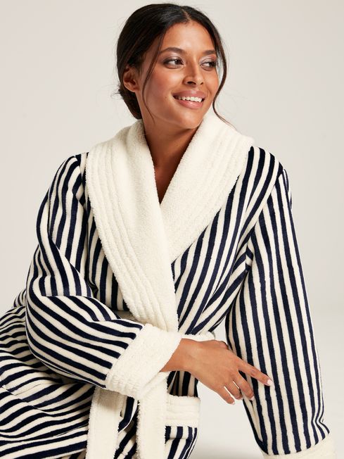 Wrap yourself in comfort with the wonderfully cosy Matilda dressing gown. It's crafted from the softest fluffy fleece and features contrasting borg fleece to the lapel collar, cuffs, waist tie and pocket openings for a touch of luxury. You can choose from a number of classic prints (including a charming dog print from our archives we think you'll love) and you'll find a Joules branded patch to the pocket. Pssst... this would make a fantastic gift, don't you think? Supersoft fluffy fleece Borg fleece lapel collar, cuffs, waist tie and pocket openings Top stitching detail Functional waist tie Two patch pockets Branded patch to the pocket