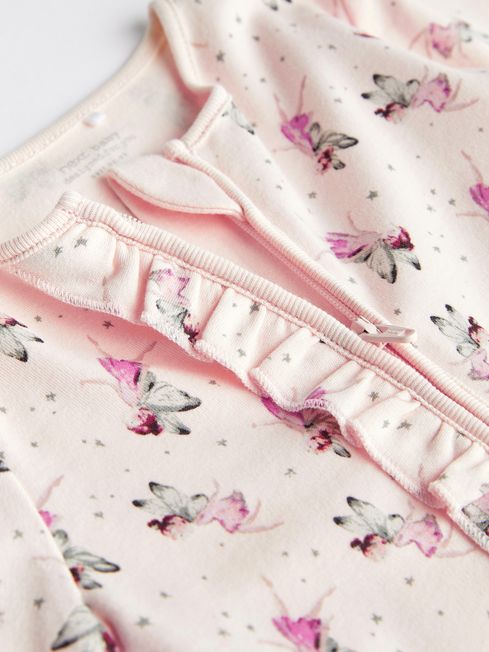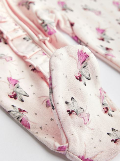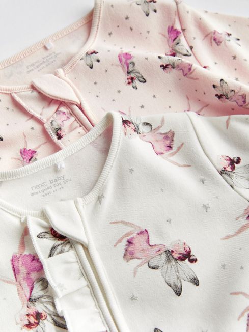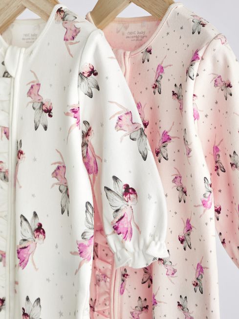 Featuring printed back neck labels which are supersoft on the baby's neck. These sleepsuits have integral scratch mitts for up to 3-6 months. With zip fastening for easy changing and no harmful dyes or chemicals have been used, keeping your baby safe. 100% Cotton Shoulder frill detail Zip guard Super soft Ribbed texture Leopard/unicorn print