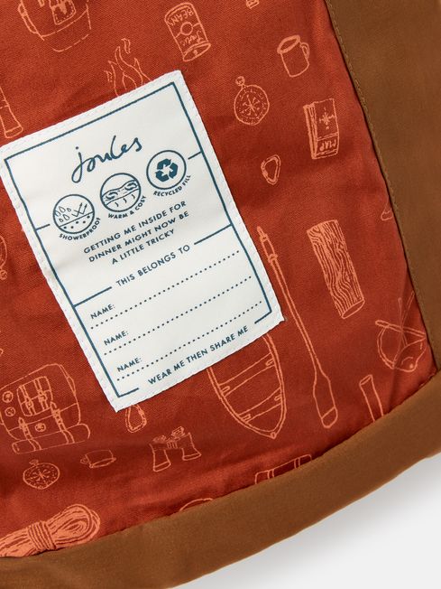 We've swapped traditional diamond quilting for large square quilting to give the Broderick coat a contemporary twist for style-conscious little ones. The wadding fill in each square adds a hug of warmth perfect for the winter months, while the outer has a buttery-soft feel and is showerproof for protection in light bursts of rain. Able to adapt to the forecasts, the hood zips off and on easily and features bungee toggles and a printed lining. Other weather-beating properties include ribbed storm cuffs, a zip and popper fastening with a storm placket and dual entry bellow pockets for keeping the hands toasty. Completing the coat is an adventure-inspired printed lining and a Joules branded tab. A cold weather wonder they'll wear without argument. Showerproof Relaxed fit Large square quilting filled with wadding Detachable hood with printed lining and bungee toggles Zip and popper fastening Buttery-soft feel outer Adventure printed lining Dual entry bellow pockets with poppers Branded badge to the sleeve Storm cuffs