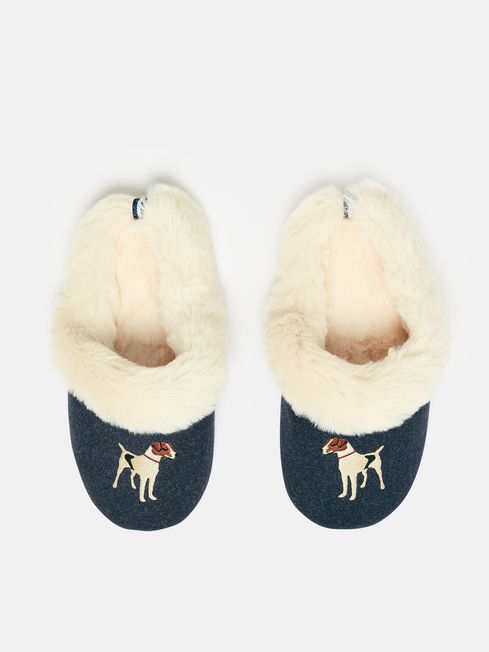 Whether you're putting your feet up or padding about the kitchen to sneak a midnight snack (we won't judge), our Slippet Luxe slippers will make the occasion just that little bit more special. The upper material is crafted from textured felt and features charming character embroidery, while the wide faux fur cuff and lining is on hand to provide ultimate comfort. On the bottom of both slippers there's a message in bubble print that not only adds a touch of fun, but provides added grip (so no skidding on those kitchen tiles). Mule-style slip-on slippers Faux fur cuff and lining Character embroidery Puff print to sole for grip Grosgrain tab detailing
