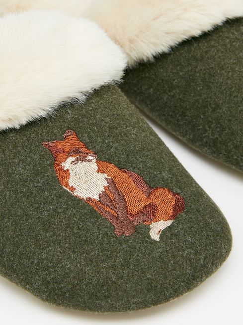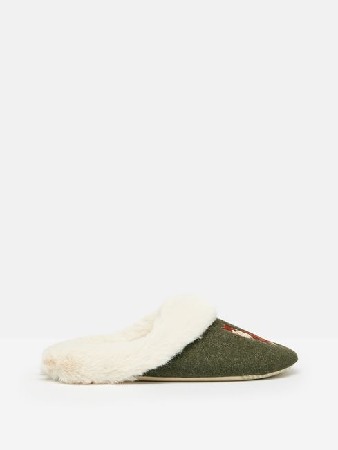 Whether you're putting your feet up or padding about the kitchen to sneak a midnight snack (we won't judge), our Slippet Luxe slippers will make the occasion just that little bit more special. The upper material is crafted from textured felt and features charming character embroidery, while the wide faux fur cuff and lining is on hand to provide ultimate comfort. On the bottom of both slippers there's a message in bubble print that not only adds a touch of fun, but provides added grip (so no skidding on those kitchen tiles). Mule-style slip-on slippers Faux fur cuff and lining Character embroidery Puff print to sole for grip Grosgrain tab detailing