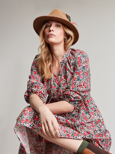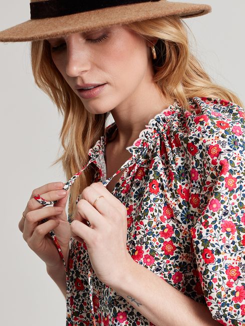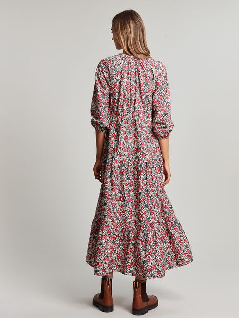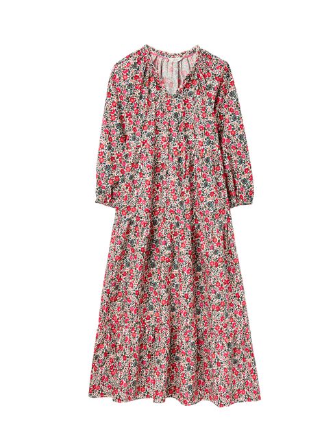 The dress of dreams? We think so. Our new Melody maxi dress is tiered creating an elegant and flattering shape. It has long raglan sleeves with elasticated cuffs, a scallop trim neckline and an open v-neck with ties. The hand-drawn ditsy print speaks for itself. Bold, beautiful and full of blooms.