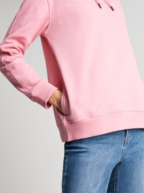 In a season all about layering, having easy-to-wear pieces in your wardrobe is essential. This jersey hoodie has a relaxed fit and dropped shoulders for supreme comfort, a hood with drawcord ties and pockets to the side seams. It's finished with topstitch detailing to the arm and hood and has ribbed trims.