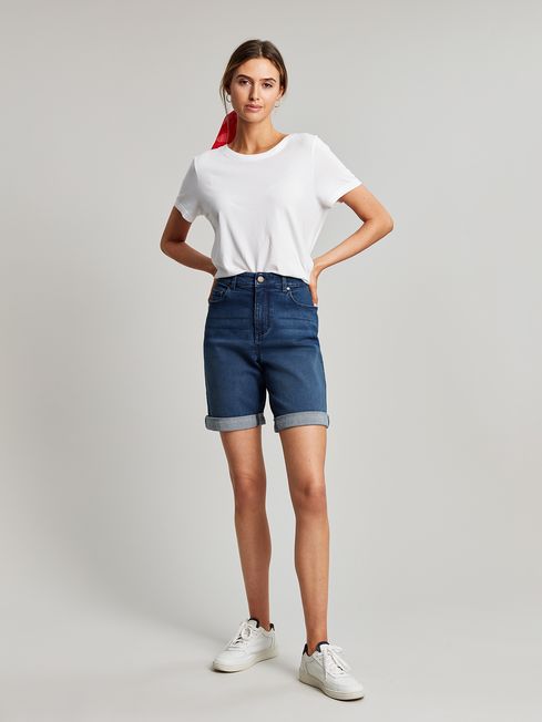 Perfect for pub gardens, trips to the beach or pottering around the house, a pair of denim shorts is a wardrobe staple for the warmer weather. Shirley is a classic pair that you (and we) have been loving for a long time thanks to the flattering high-rise waist, relaxed fit and added stretch fabric for comfort. They have a slightly longer leg length (unrolled they sit just above the knee) but can be rolled up to a double-turned hem. They have printed pocket bags and traditional five-pocket styling. Something you might also love to know is that they are made using an Eco Wash technique that uses less water, energy and chemicals than traditional washing methods. Truly a style you'll want in every colour!