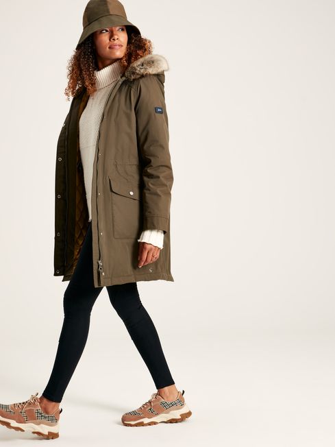 Timeless, classic, love-forever… This coat will never go out of style and be relied upon year after year to provide you with protection from the elements. Cut to a longer-length, parka-style shape, this waterproof coat provides good coverage and with a zip and popper fastening, will be a great barrier from driving wind and rain, too. Its quilted lining will give extra warmth and the detachable faux fur trim to the hood is a playful and stylish addition. Spacious popper pockets add even more practicality and internal drawcords to the waist means you can adjust the fit to flatter your look or even accommodate extra layers. Staying warm and dry will have never been so easy (or looked so good).
