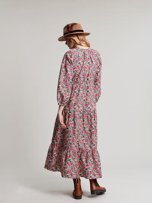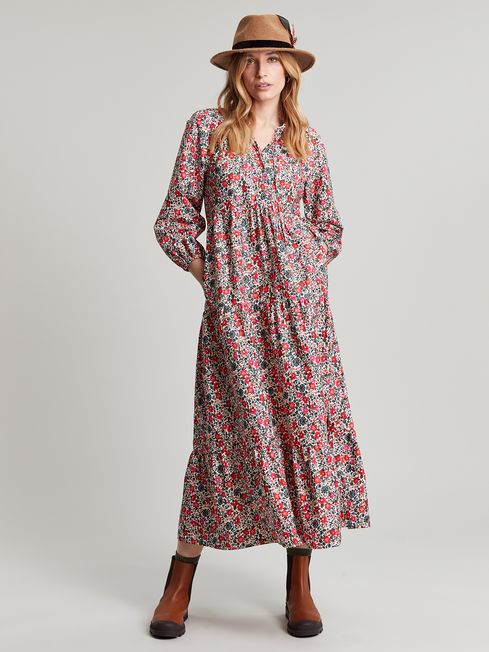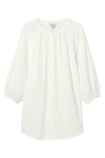 Joules White Melody Tiered Scallop Frill Neck Dress