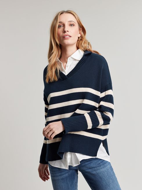 Esther Navy Blue Drop Shoulder Long Sleeve Top