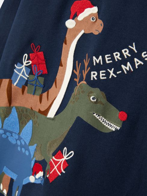 Our much-loved Finlay top has been given a festive twist with this pretty roar-some artwork - perfect for school Christmas parties, or just when they're feeling especially merry. Now for the practical bits... it has a classic crew neck and long sleeves great for layering. The dropped sleeves make for a more relaxed fit creating a little extra growing room, so they can love this top for longer. Jersey Slight relaxed fit Long, dropped sleeves Crew neck Festive screen print to the front Joules branded tab to the side seam Contrast stitching
