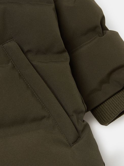 Meet our Padwell coat - a piece that will keep your little one feeling warm, but looking oh-so-cool. For a contemporary look the baffels on the coat (the small pockets of space between the wadding) have been held together using ultrasonic welding to make the coat fully waterproof while keeping a sleek look. There's a full zip fastening with chin guard, a hood with reflective fixed cord detailing, slanted side pockets and ribbed storm cuffs. We've finished it off with a Joules hare screen print to the chest and a reflective 'Adventure Awaits' screen print to the back. Padded coat Fully waterproof with ultrasonic welded baffels Heat sealed seams Hood with fixed cord detailing Full zip fastening with chin and zip guard Ribbed storm cuffs Two front zipped pockets Internal name label Reflective 'Adventure Awaits' print to the back Joules hare print to chest