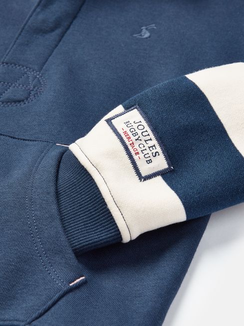 The perfect combination of preppy and practical, our Try rugby sweatshirt will be a big point scorer in your little one's wardrobe. With long sleeves and crafted from hardwearing jersey, it's perfect for running around (on or off the pitch). It's full of classic details such as a quarter button placket, a twill collar with undercollar stitching, a kangaroo pocket and ribbed cuffs and hem. For that unique-to-Joules finish we've added colour block panels, as well as branded embroidery to the chest and the back. Cotton blend Relaxed fit Concealed button placket Kangaroo pocket Colourblock detailing Twill collar with undercollar stitching Embroidered Joules branding to the back Branded patch to the arm