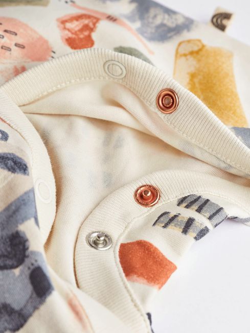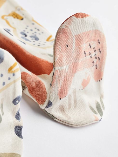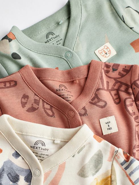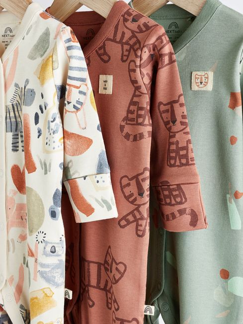 Our cute and cosy sleepsuits come in a handy three pack with embroidered motifs, a popper front fastening and inner lined feet for added comfort. There's also integral scratch mitts for little hands. 3 pack sleepsuits Cool dinosaur prints Neutral tones Y-neck design Popper front fastening Inner lined feet to keep their toes extra cosy Integral scratch mitts for extra comfort 100% Cotton Nickel free poppers