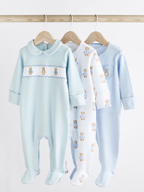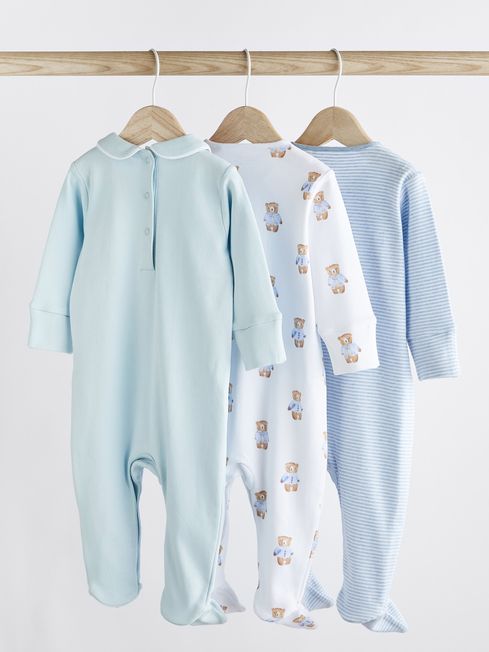 Next Blue Bear Baby Sleepsuits 3 Pack
