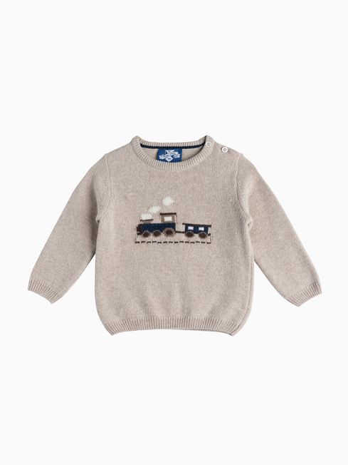 Trotters London Natural Little Oatmeal Thomas Train Jumper