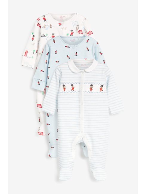 Next White Soldiers 3 Pack Embroidered Baby Sleepsuits