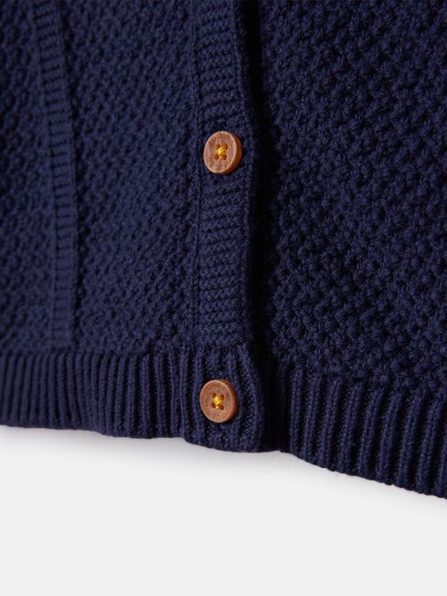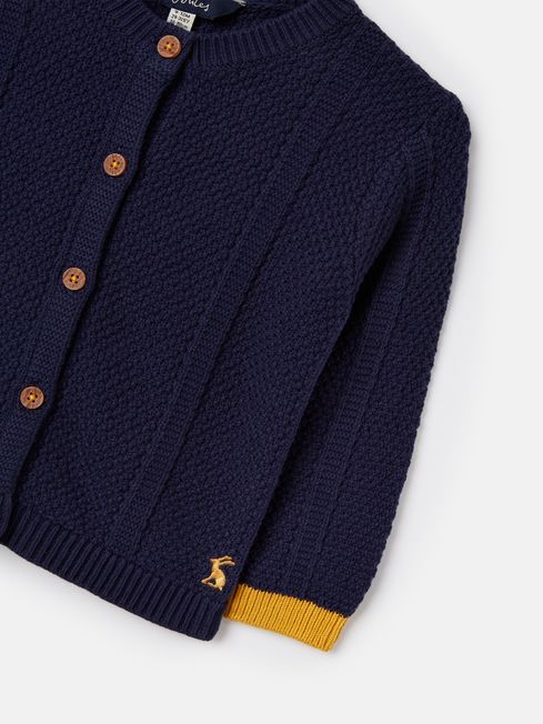 Just when you thought they couldn't get any cuter, you put them in this knitted cardigan and you're falling in love all over again. Stitched in a traditional textured pattern, it has button fastenings to the front and contrasting colours to each sleeve cuff.