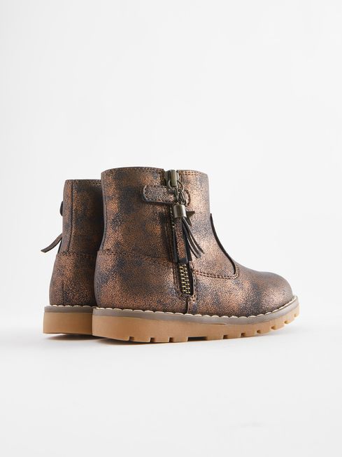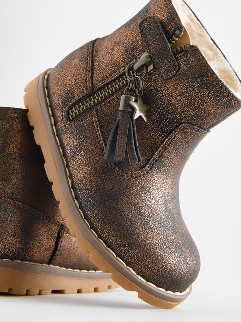 Next Bronze Brown Warm Lined Tassel Detail Zip Boots