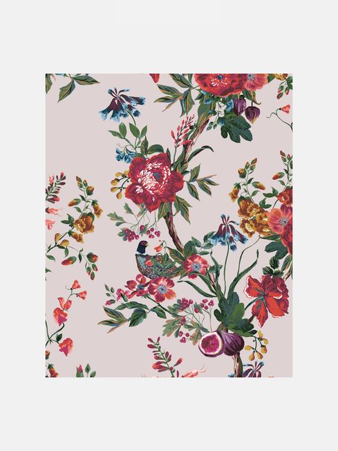 Bring the drama of the great British countryside to your home with this beautiful handpainted chinoiserie, brimming with enchanting trailing blooms. Discover hidden pheasants, charming fruits and berries intertwined with florals, all painted with exquisite detail. The antique crme background has a warming pink undertone for softness, and bright pops of colour lift the design for a fresh take on a classic piece. Perfect paired with bright furnishings, it's sure to get heads turning. This beautiful design has a large repeat for impactful scale and is printed on a matt substrate for a contemporary look and feel. This wallpaper is also pastethewall, making it easy to hang.