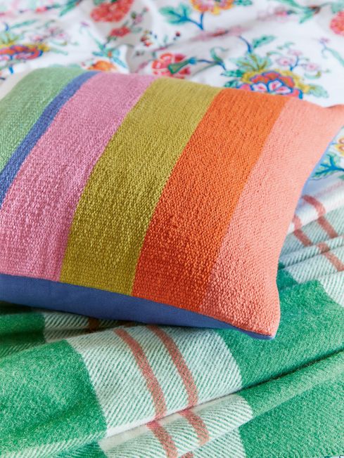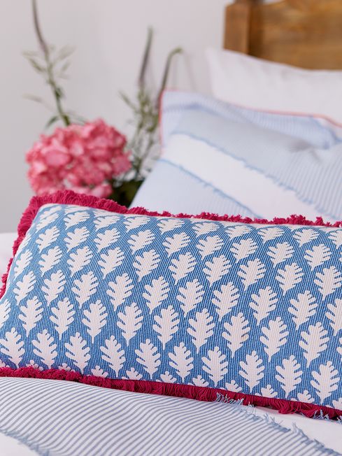 Blue Diagonal Clipped Stripe Cushion