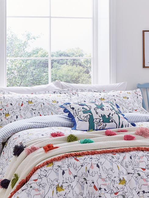 White Linear Dogs Duvet Cover and Pillowcase Set