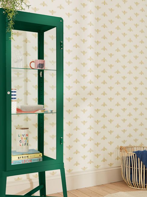 Antique Gold Block Print Bee Wallpaper Wallpaper