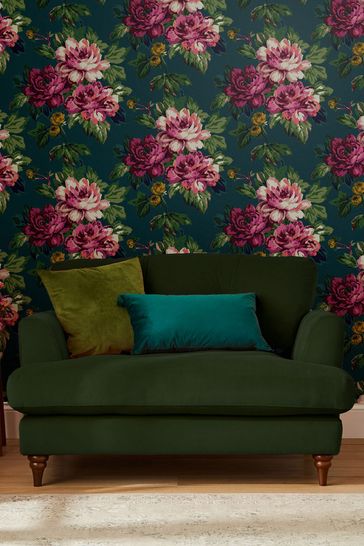 Peacock Blue Invite Floral Wallpaper Wallpaper